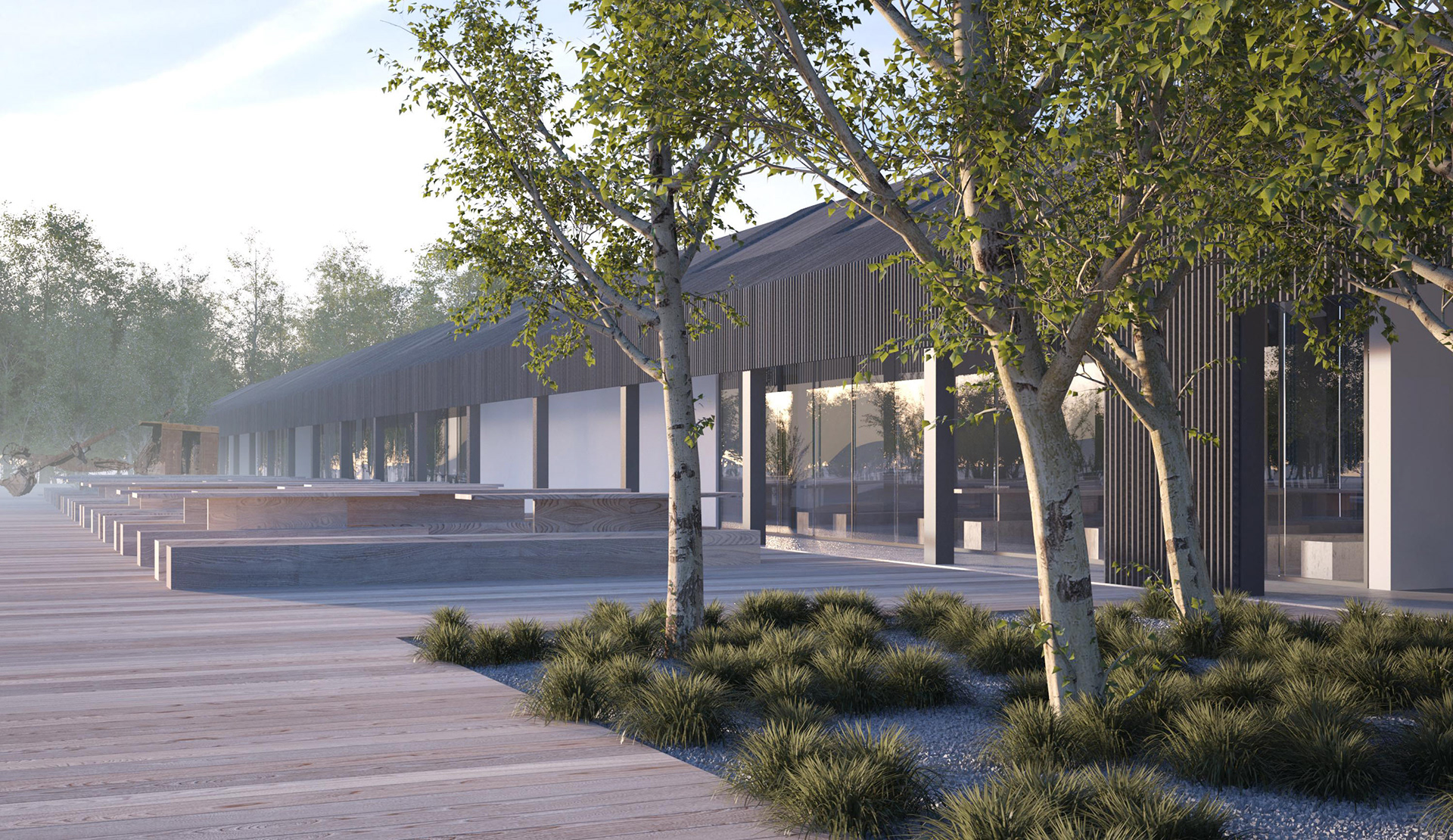 Acting as a threshold, dividing car parking from the wider parkland area, the building has a water feature running the length of the northern facade, and outdoor café and play spaces to the south, linking to the country park beyond.